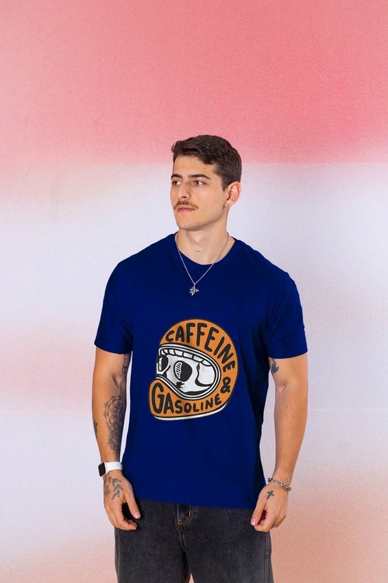 Camiseta Masculina Azul Marinho – “Caffeine & Gasoline”