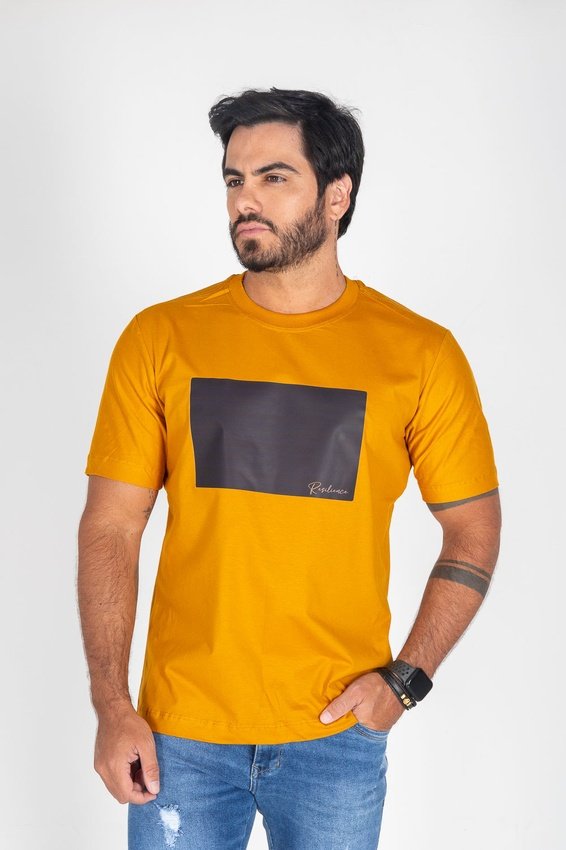Camiseta Masculina Mostarda com Estampa Frontal – “Resiliência”
