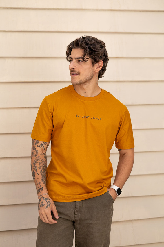 Camiseta Masculina Mostarda – “Saved By Grace”