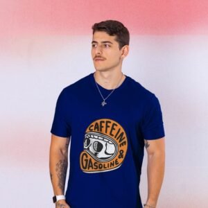 Camiseta Masculina Azul Marinho – “Caffeine & Gasoline”